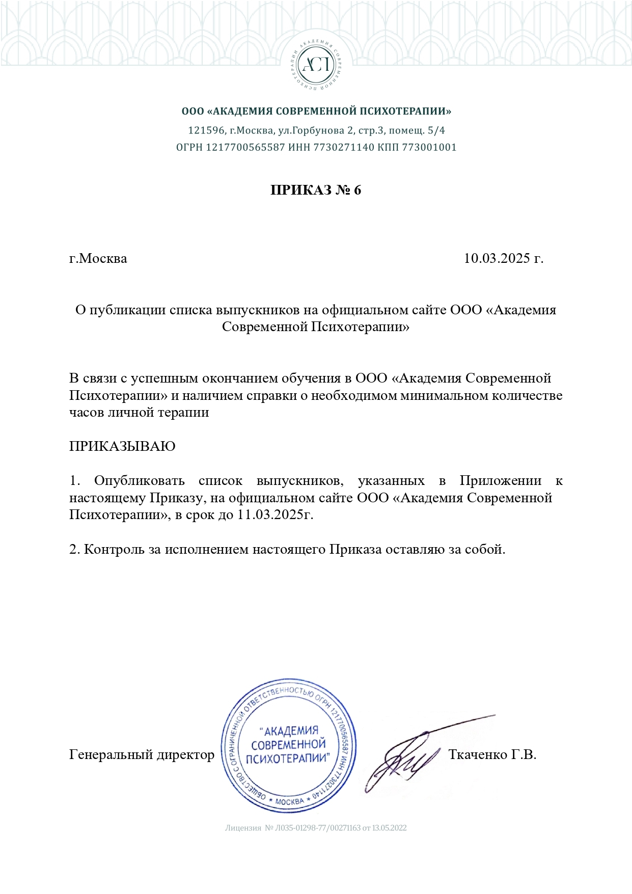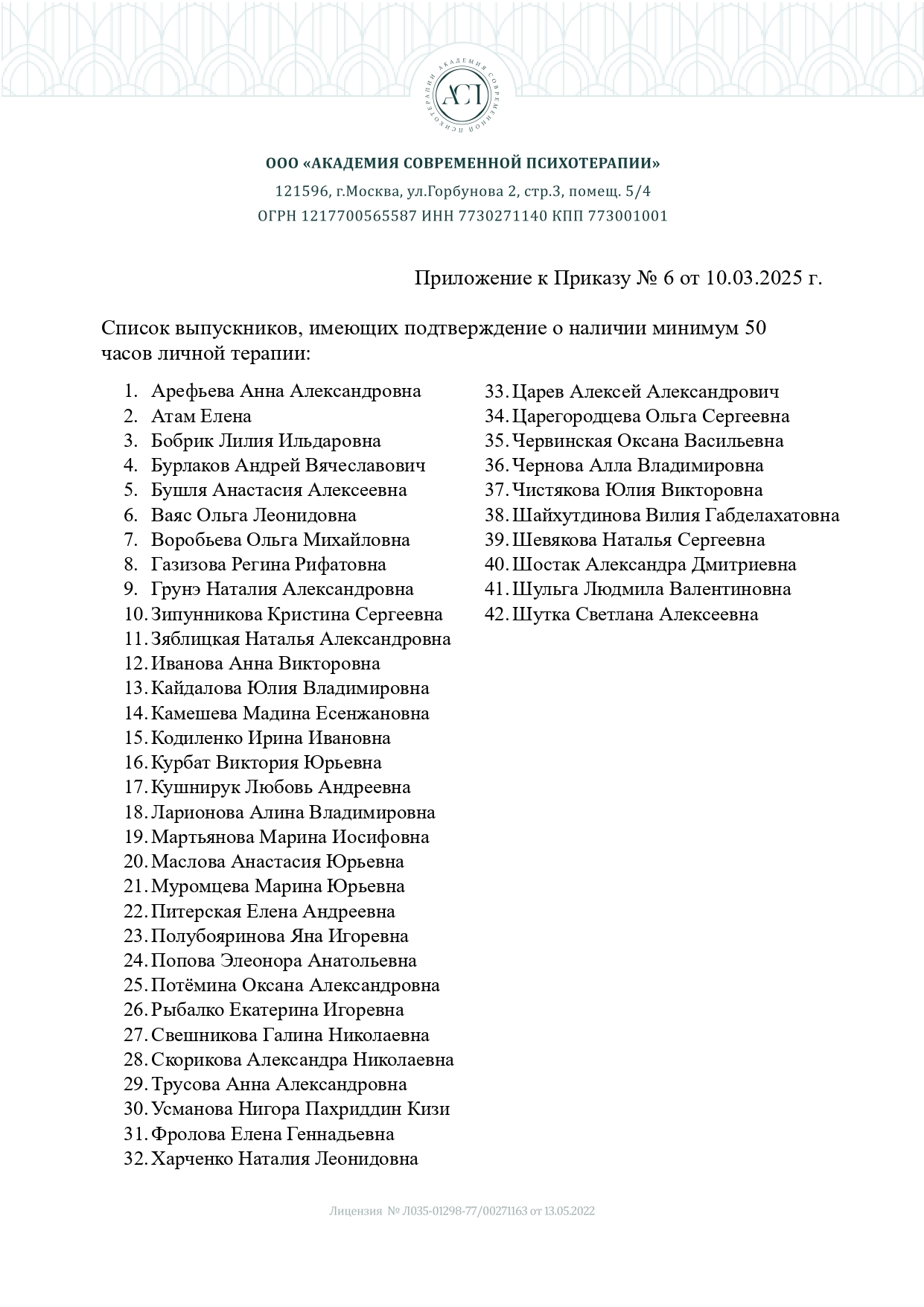 Действительный член Профессиональной Психотерапевтической Лиги.