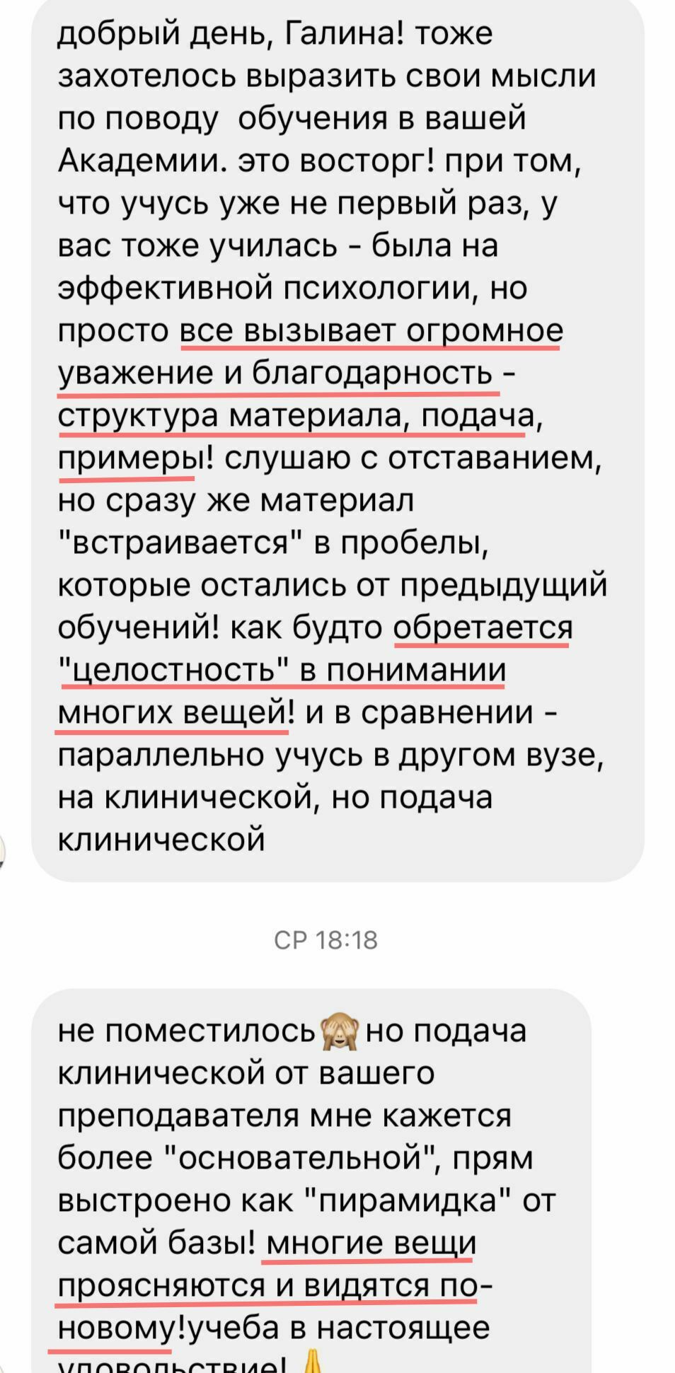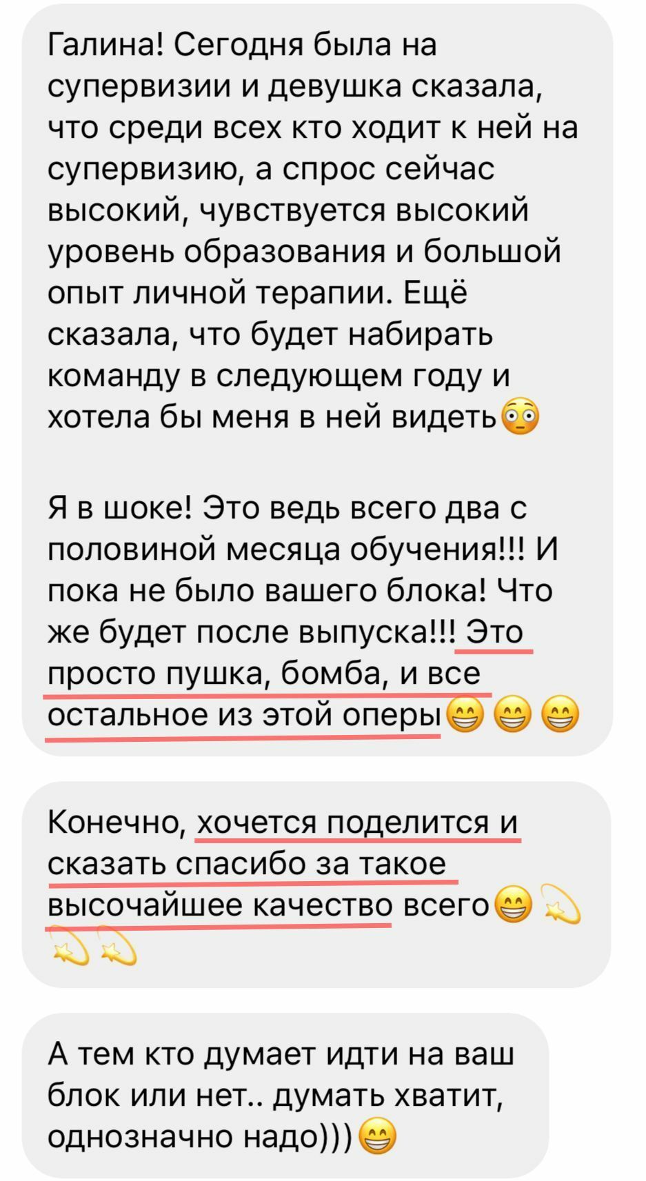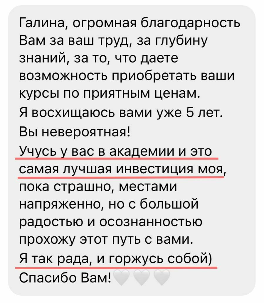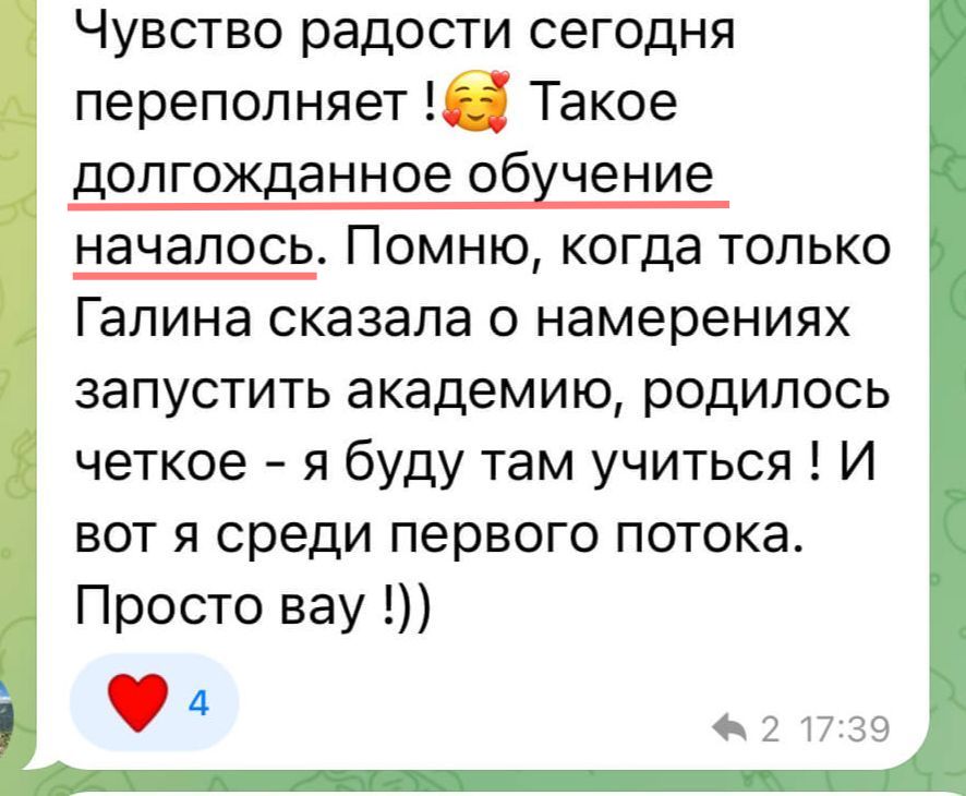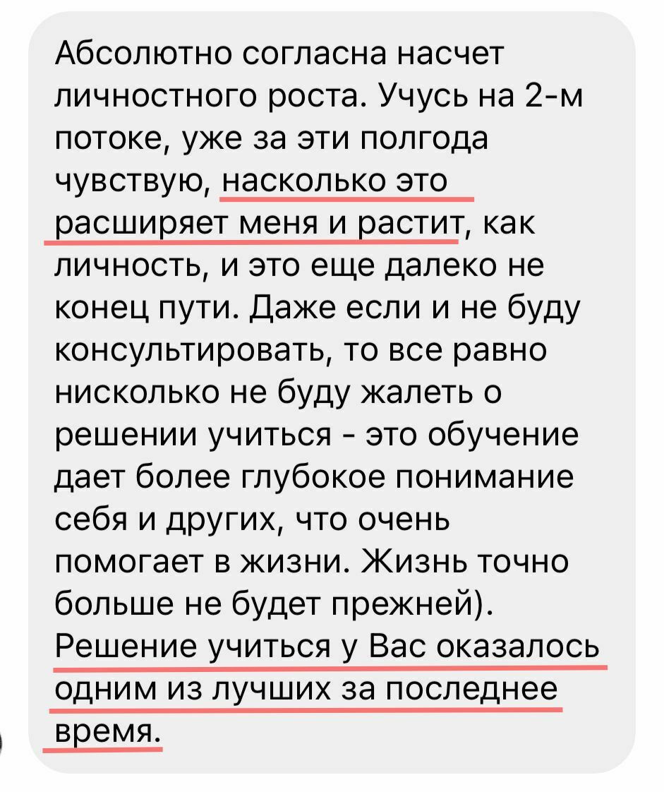 Лучших учеников после обучения размещаем на сайте и соцсетях Академии и предлагаем оплачиваемую стажировку в ПсиЦентре Галины.